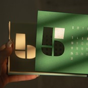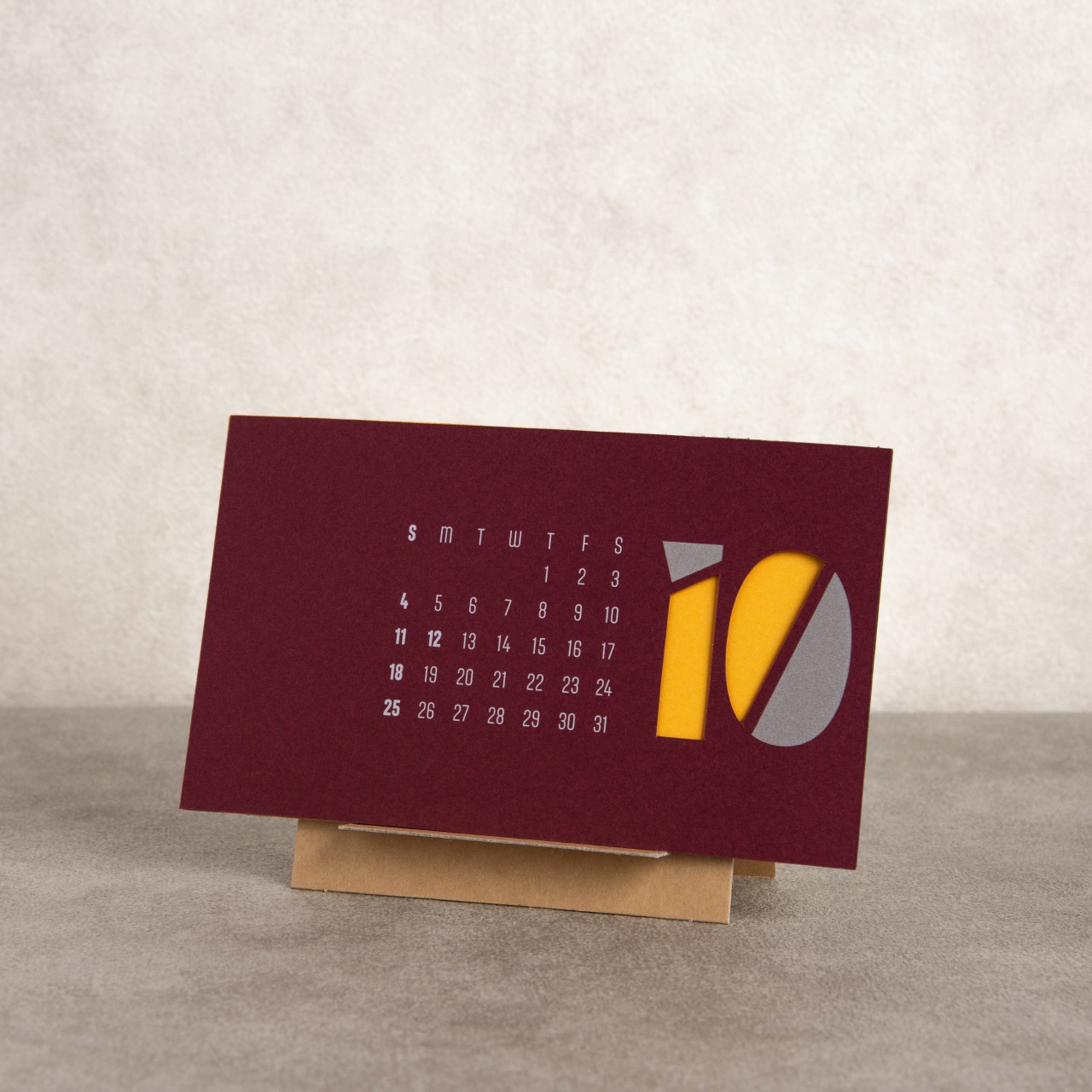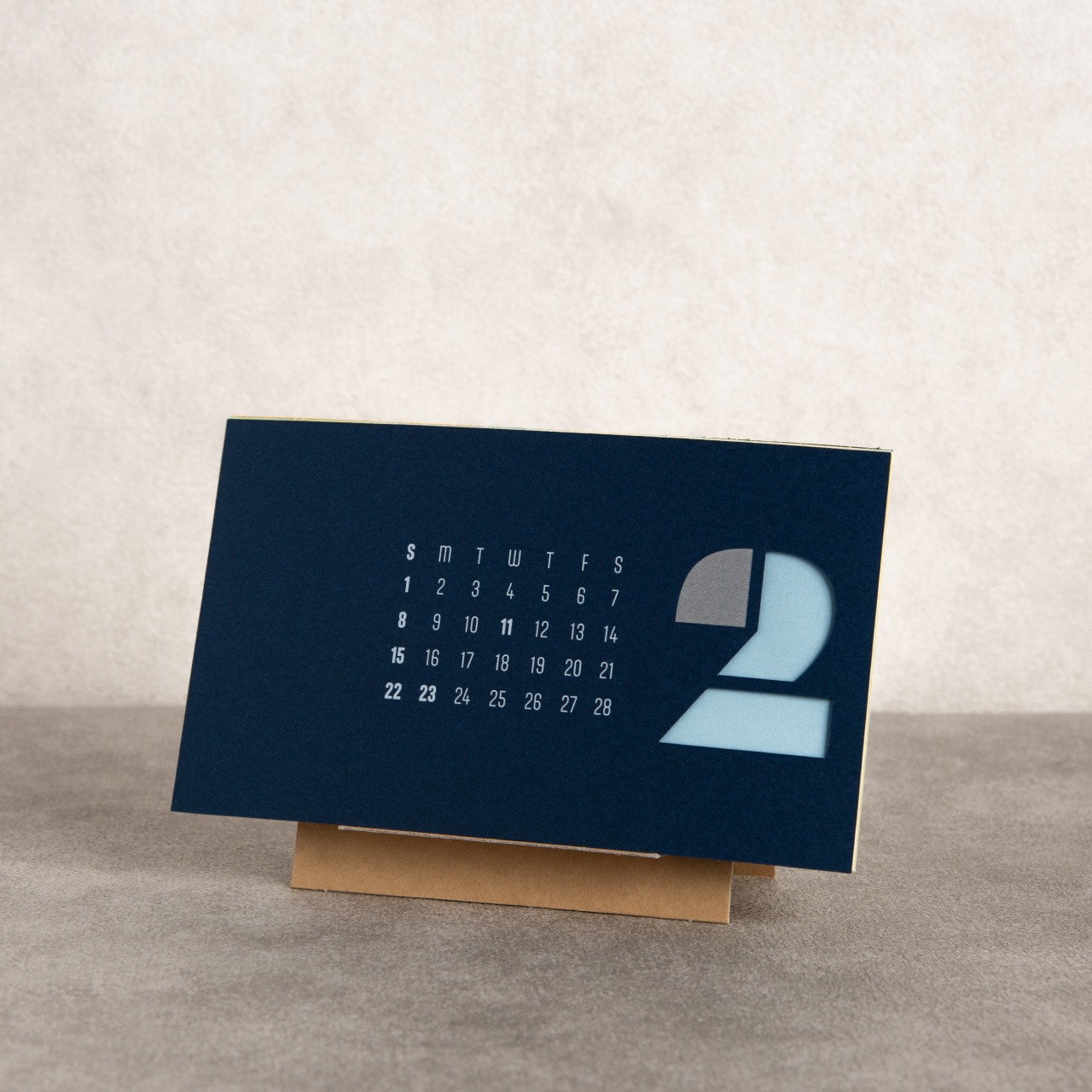 12色の紙が重なり合い、月ごとに表情を変える卓上カレンダー。