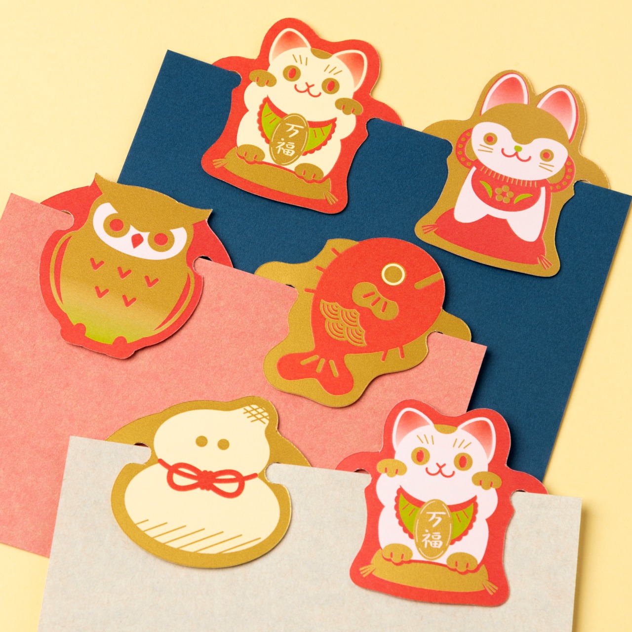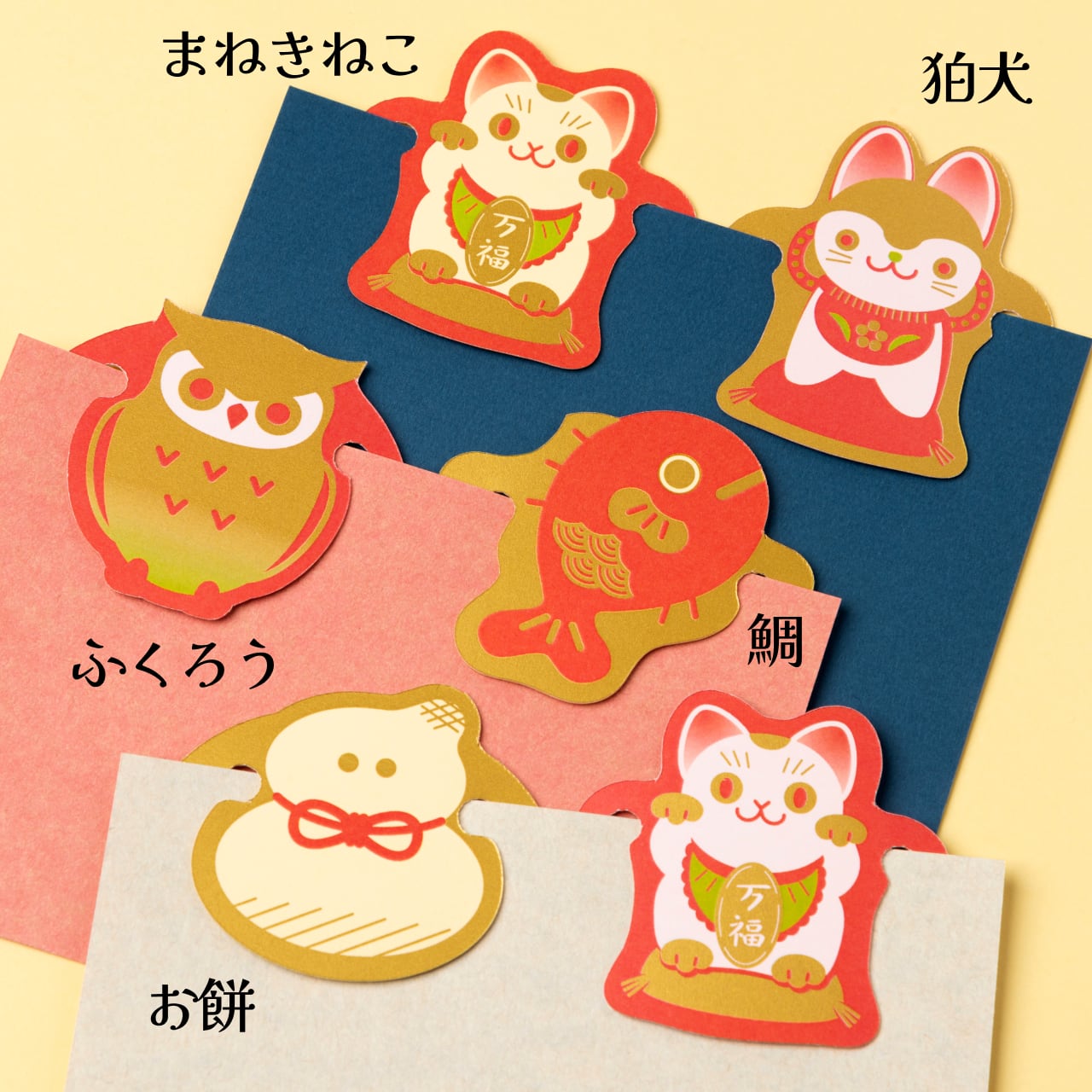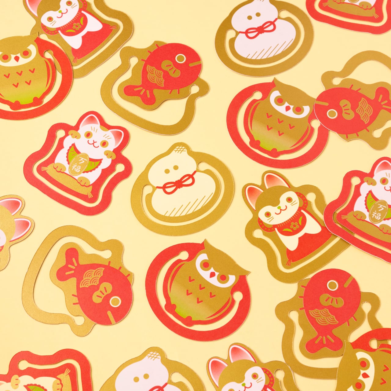 伝統的でおめでたいモチーフたちの紙製クリップ。