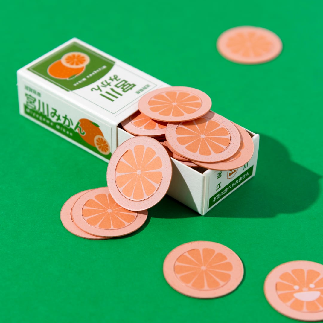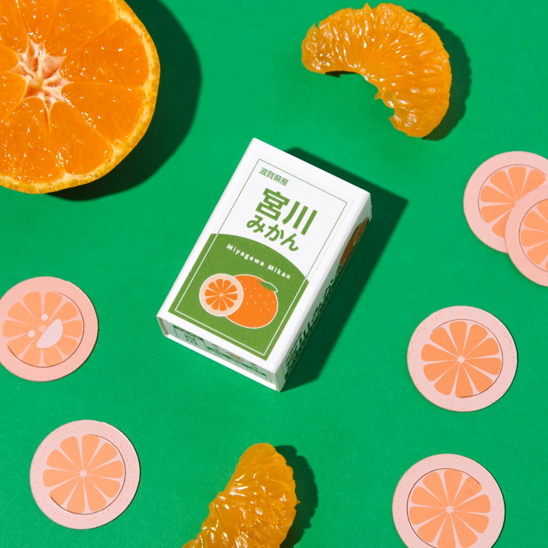 パッケージは、マッチ箱サイズの「みかん箱」モチーフ。